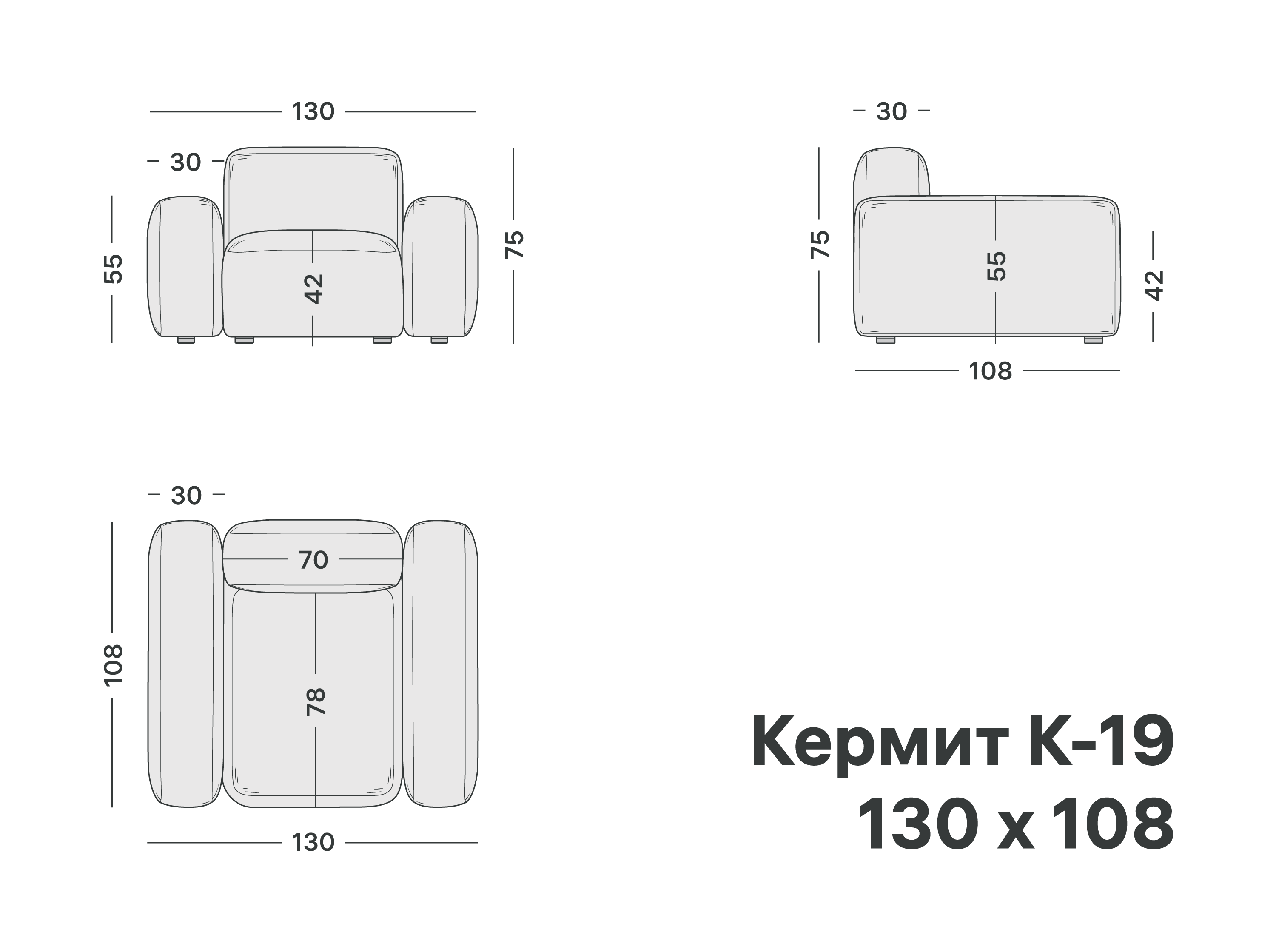 Кресло Кермит Мягкое глубокое кресло в минималистичном стиле