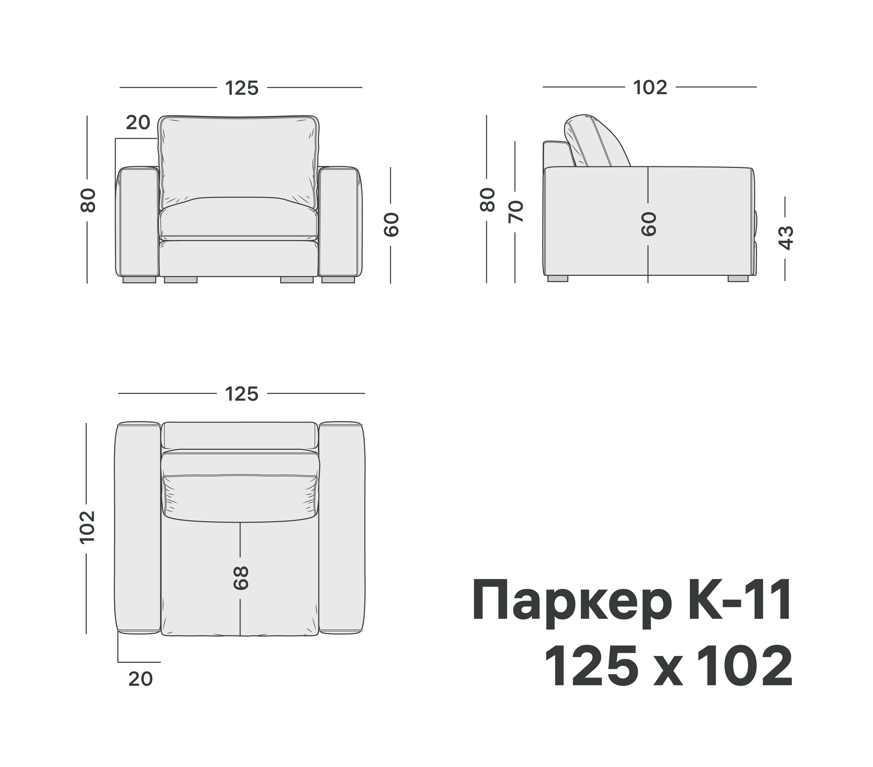 125 x 102 x 80 см