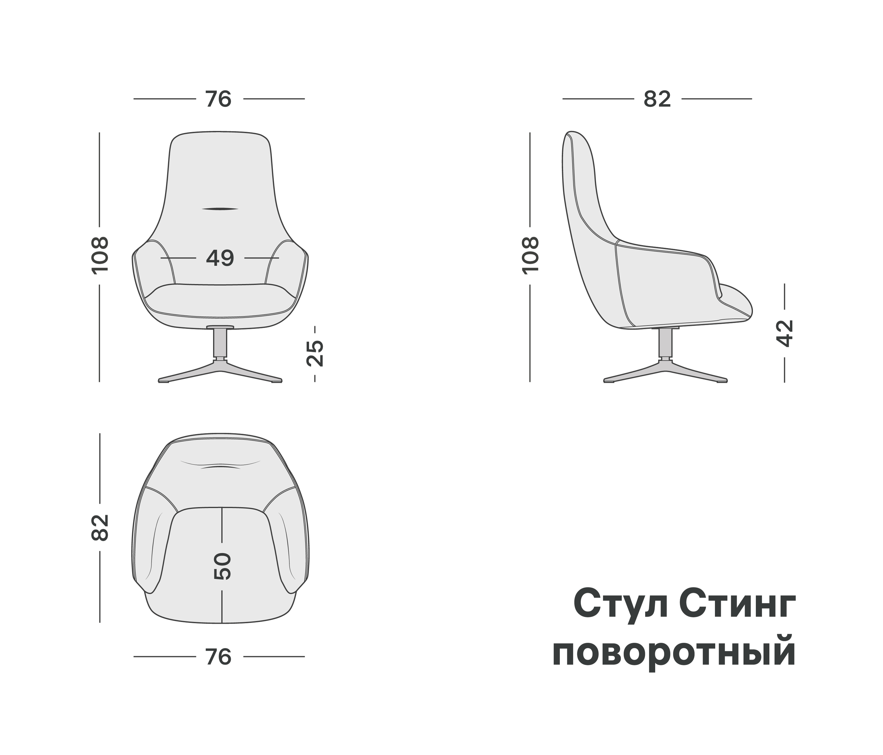 Современное лаунж-кресло с высокой спинкой и поворотной ножкой. Глубокая посадка для комфортного отдыха. Подходит для дома и общественных пространств.