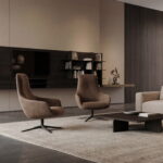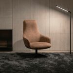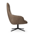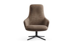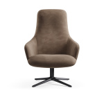 Современное лаунж-кресло с высокой спинкой и поворотной ножкой. Глубокая посадка для комфортного отдыха. Подходит для дома и общественных пространств.