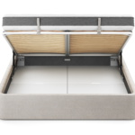 Усиленная ортопедическая решетка с березовыми ламелями и пневматическими подъемниками в комплекте. Съемное бельевое дно из ЛМДФ.