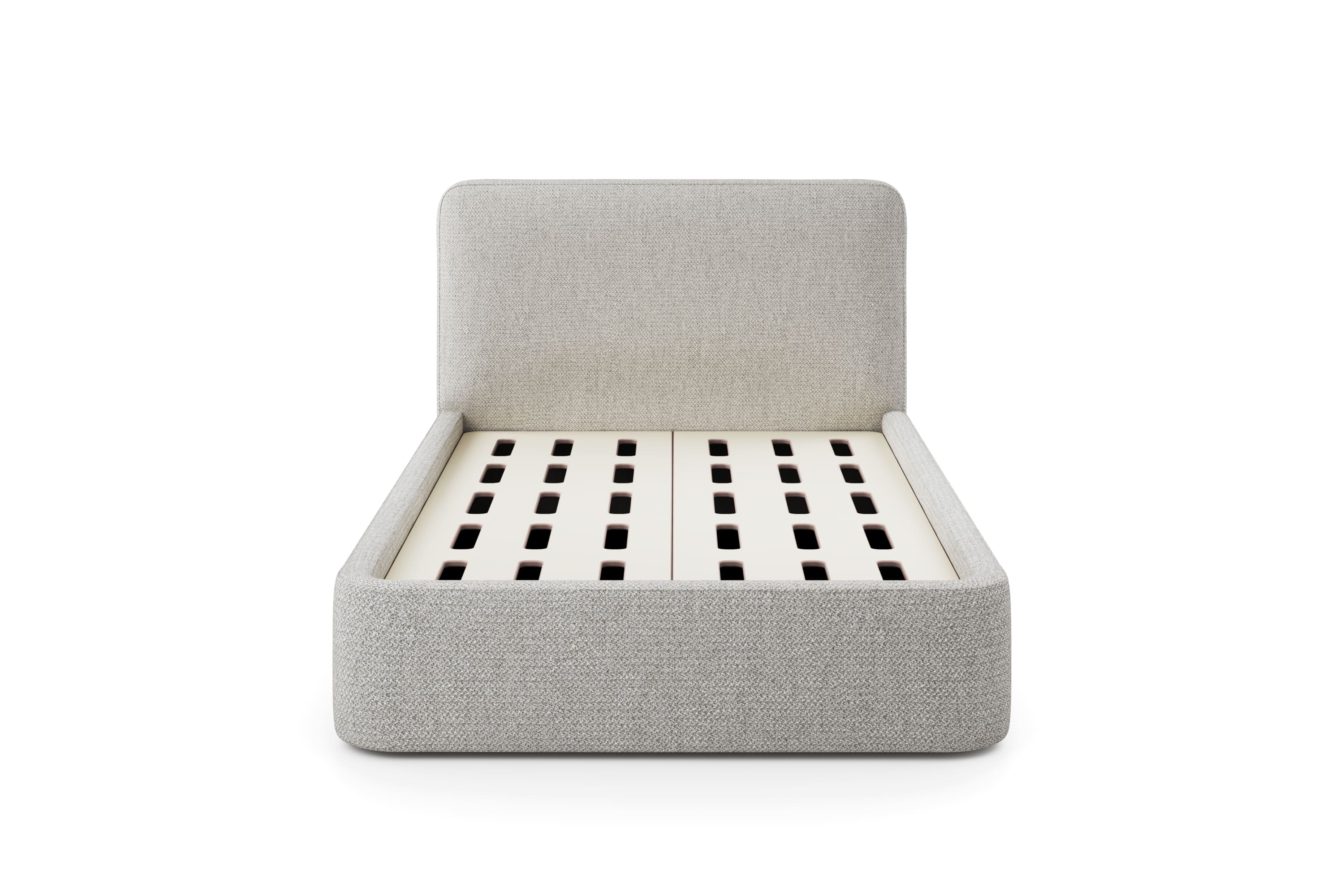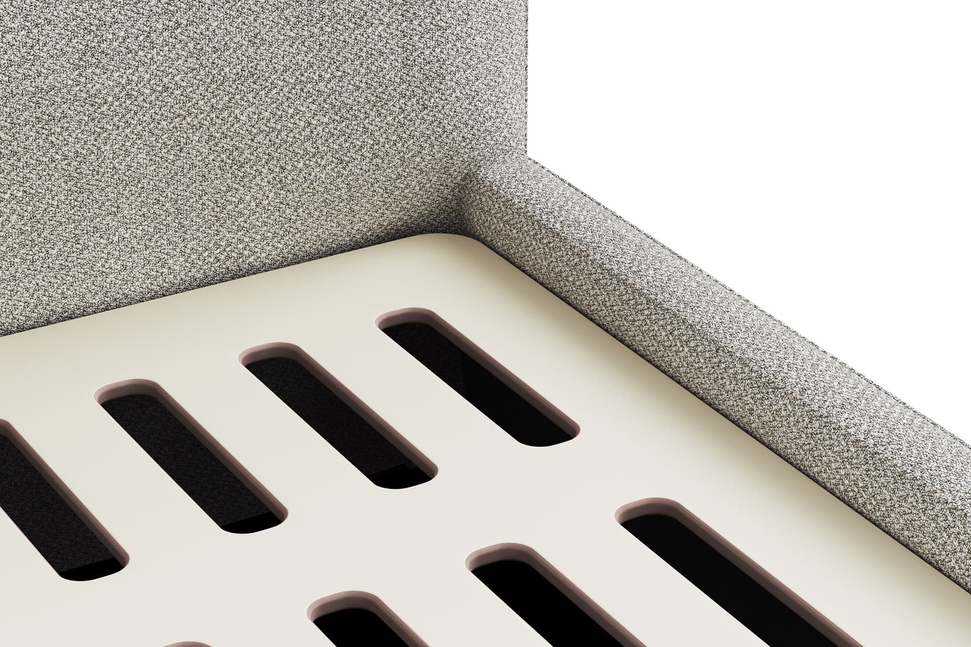 Каркас изголовья и спального места из березовой фанеры марки ФК. Усиленная крепежная обвязка на болтовом соединении. Пенополиуретан различной степени плотности, синтепон, периотек.
