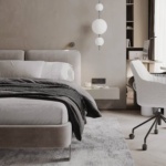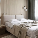 Кровать Тадао на ножках в интерьере в обивке: Fancy Fabric Adriana 02, дизайн от: Екатерина Третьякова. Фото 3