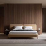 Кровать Тадао на ножках в интерьере в обивке: Domiart Marino 28, дизайн от: Дизайн-студия TANDEM. Фото 2
